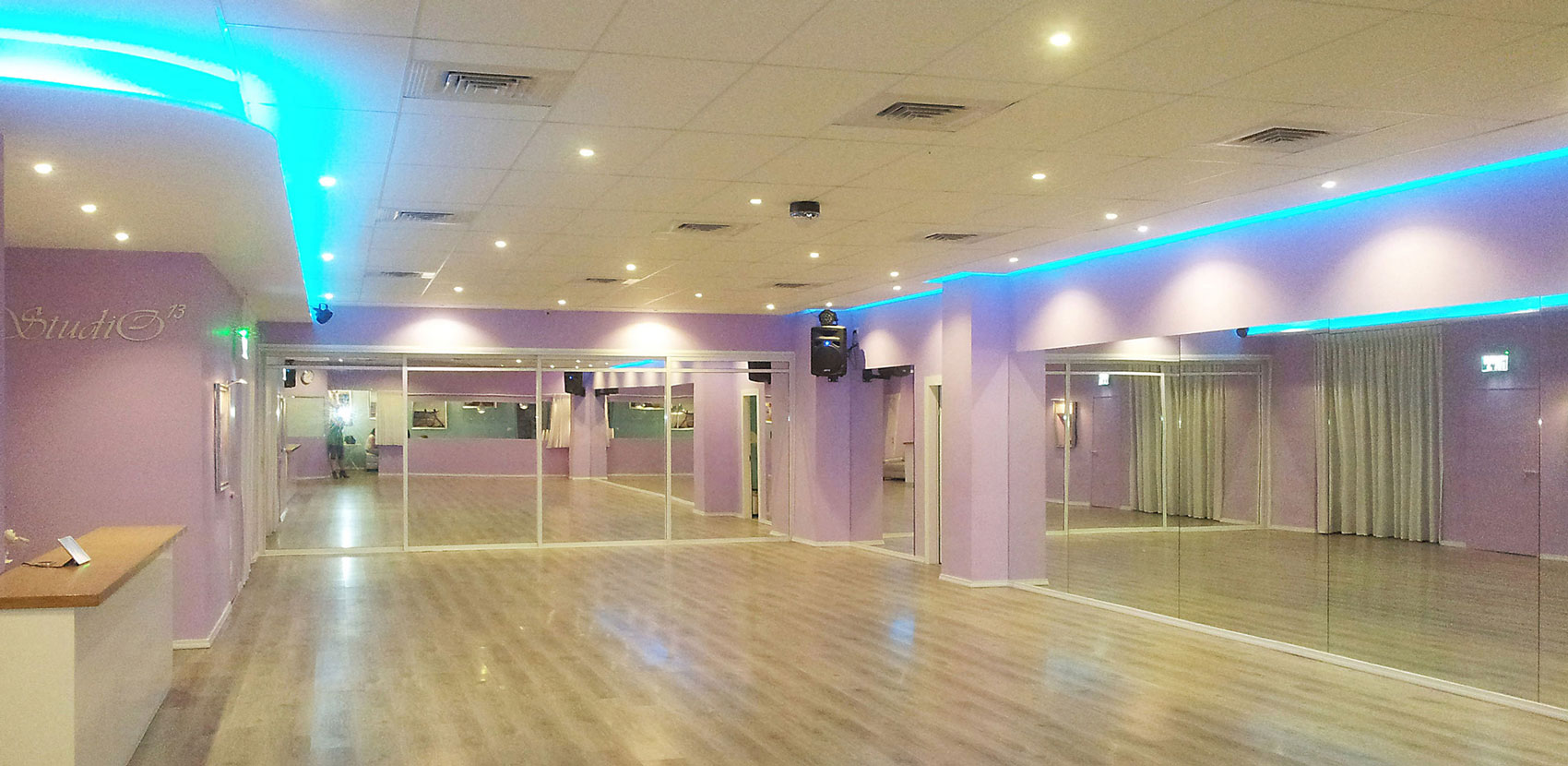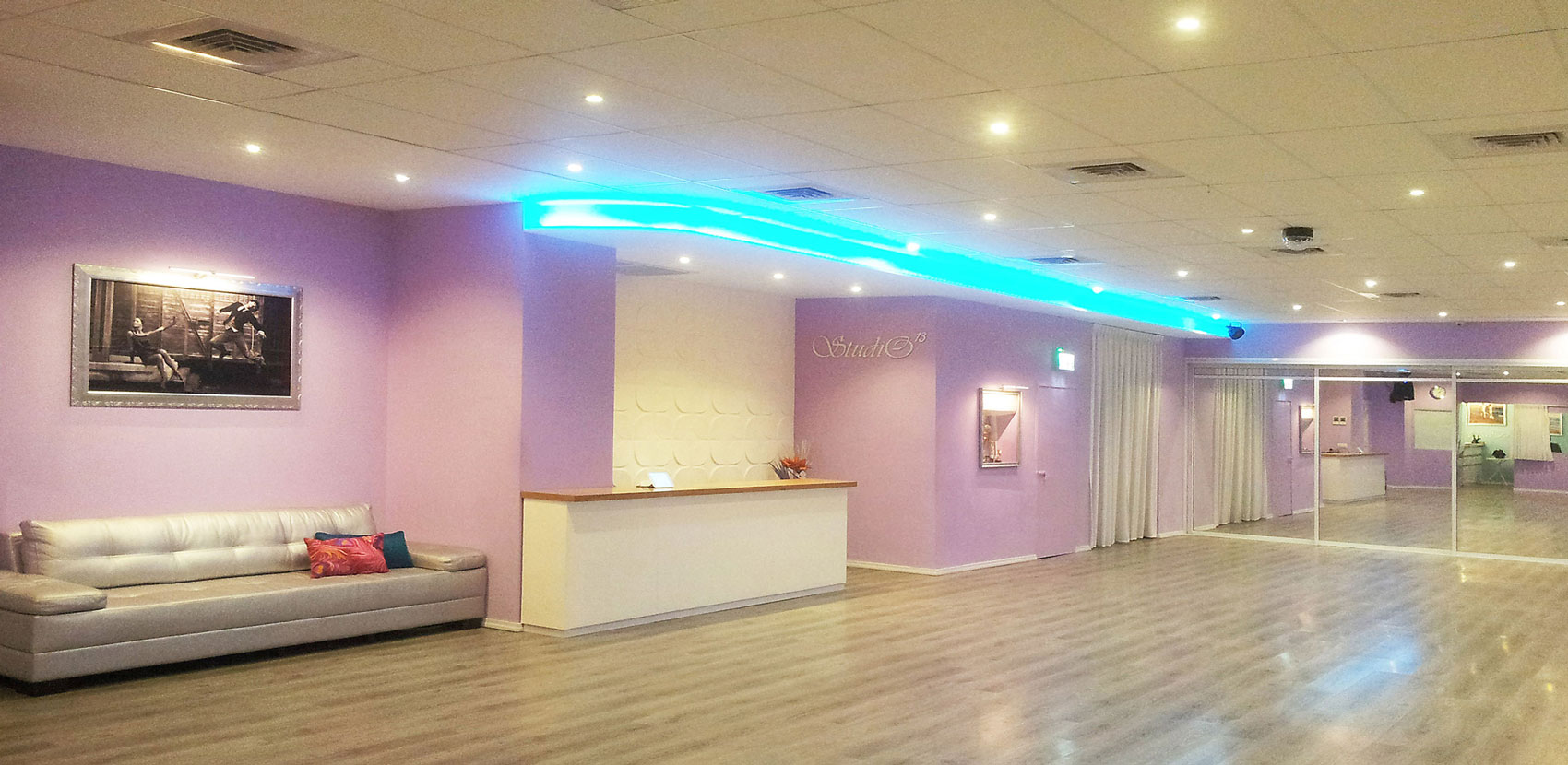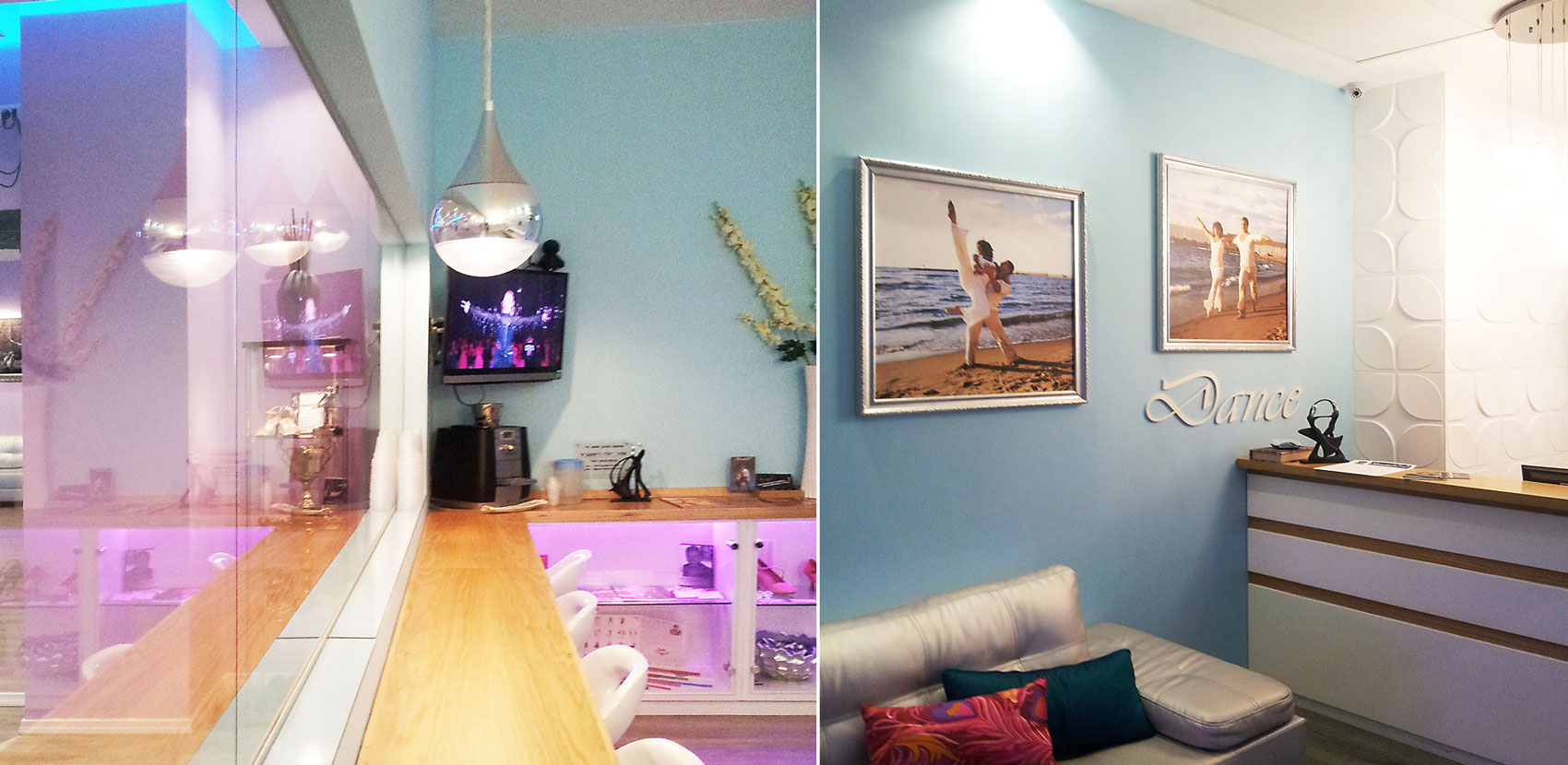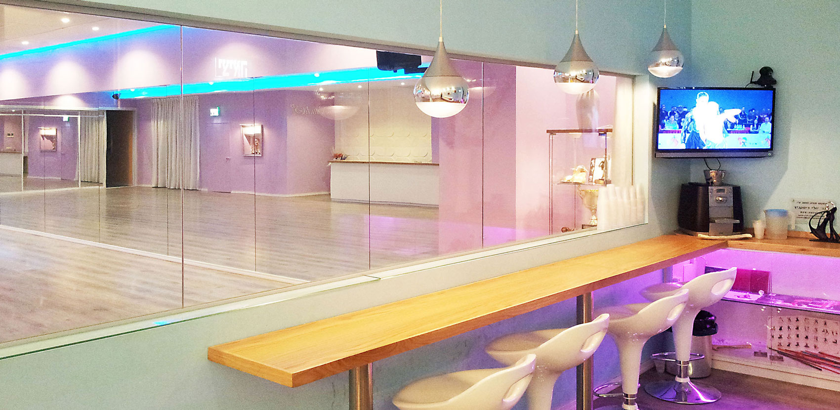 עיצוב מודרני לחלל הריקודים הסלוניים והלטיניים – "סטודיו 13", רמת גן – אשר בבעלותם של זוג הרקדנים המקצועיים מהמובילים בארץ – אלכסיי ואירינה בגנצב.